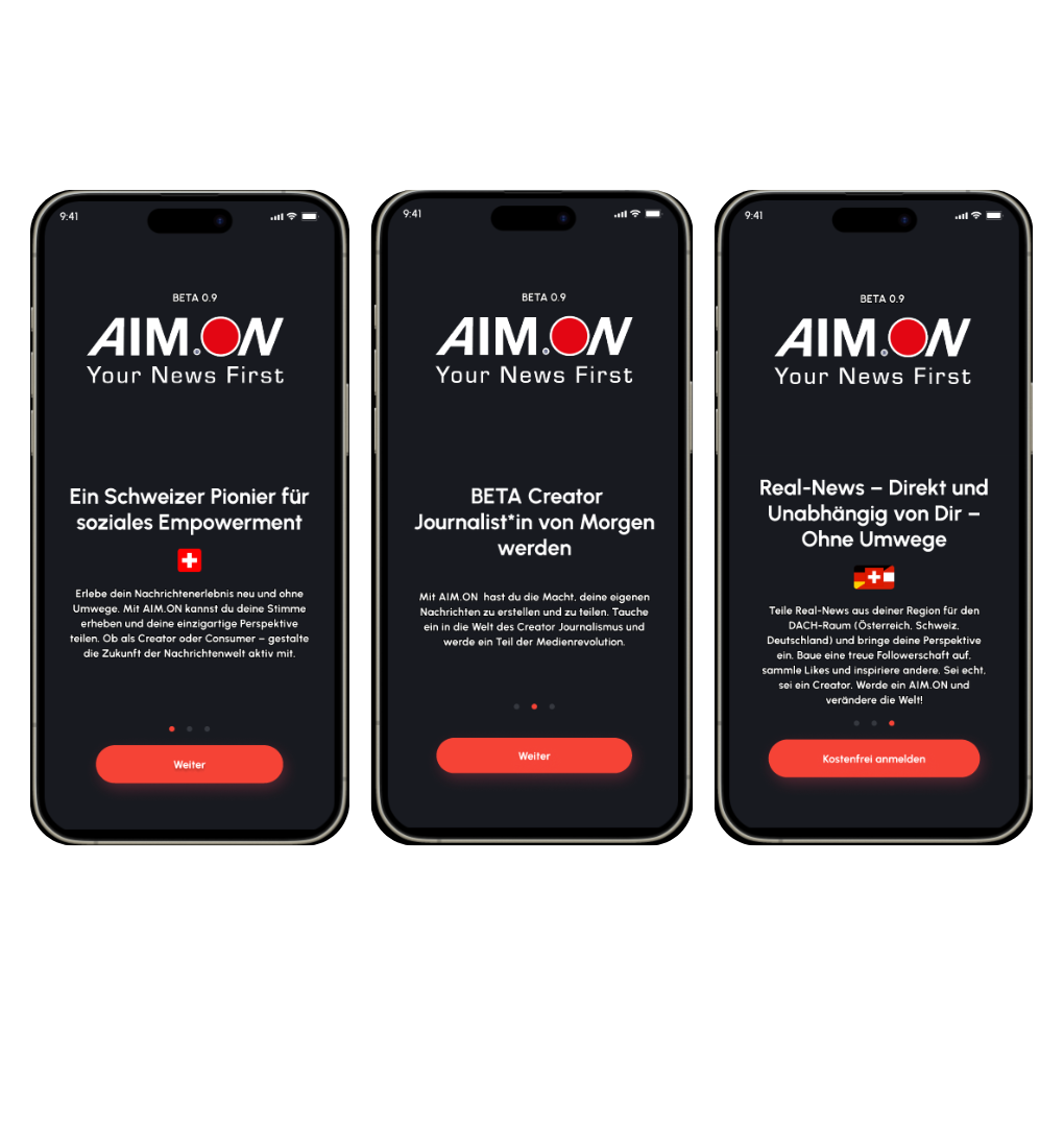 Hier liegt der Fokus nicht auf Likes oder Followerzahlen, sondern auf echten Geschichten, die die Welt bewegen. Unsere Plattform ist ein geschützter Ort für den Austausch von Perspektiven, ohne die ständige Sorge vor negativen Reaktionen. AIM.ON schafft Raum für echte News, fernab der lauten Dynamiken von Social Media, und gibt Deiner Stimme den Platz, den sie verdient.
